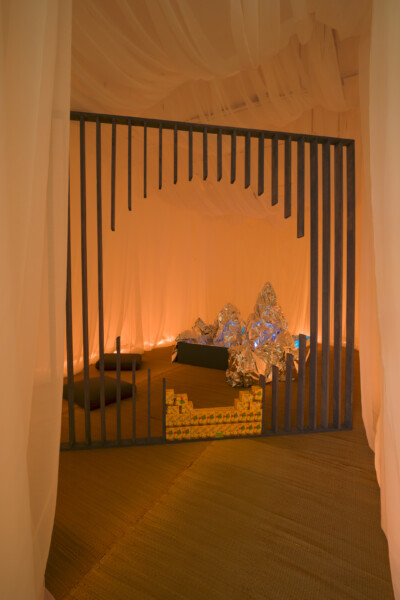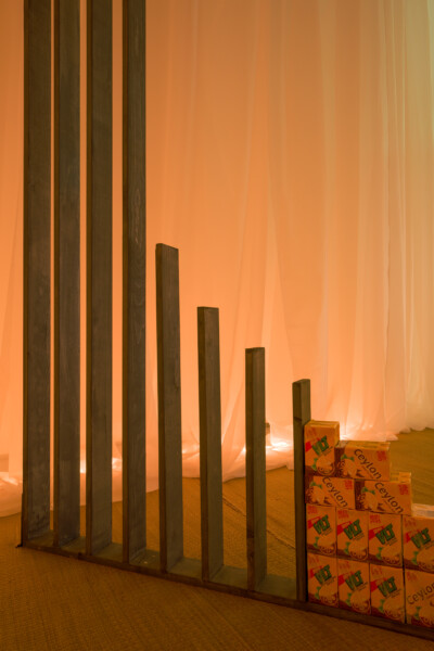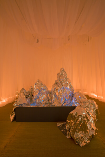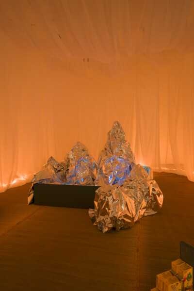 wave hands, like clouds, not eyes is a sequence of haptic encounters that trace the internal processes experienced by the artist when practising taijiquan, an internal martial art meant for both healing and injuring, incorporating daoist principles of non-purposeful action (無為 wu wei) and natural spontaneity (自然 zi ran), and the dualist interplay of yin yang cosmology. Through shifting textures, sound and scents, emphasizing contact with the ground, air, and the passage through both time and space, these sensorial experiences focus awareness on training bodily agency and the relation of the microcosmic to the wider horizon. Moving through a space of objects that are in flux at different paces, also dispersed throughout are things that have become shorthand for the mix of heritage and daily use that describe ‘Chinatown’ and its place in the diasporic imaginary.