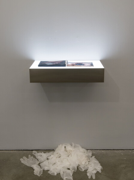 Aron Louis Cohen, Unmaking Time, Forward and Reverse_, Duraclear prints, wire binding stainless steel, LED light. 5" x 24" x 12", 2012 / 2017. Courtesy of the artist.