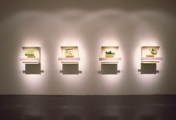 Ambivalencia as a body of work focuses on the artist’s surroundings that are generally deemed mundane or inconsequential. Brunsdale is particularly interested in those vestiges of gardens or ‘landscaping’ found in the built environment that make reference to and illuminate a relationship to nature that is, among other traits, romantic and sentimental. Brunsdale uses photography as a direct connection to the visible world and a way of maintaining a certain ambivalence. Within this straightforward ‘mundane’ format are elements of humour and melancholy. The time frame of these investigations are not limited and the artist often returns to the site to re-work the subject. The framing materials and text are incorporated to create a context for the image and act as counterweights of suggested meaning. Brunsdale has stated, “Ambivalencia reflects my interest in the overlooked aspects of life.”