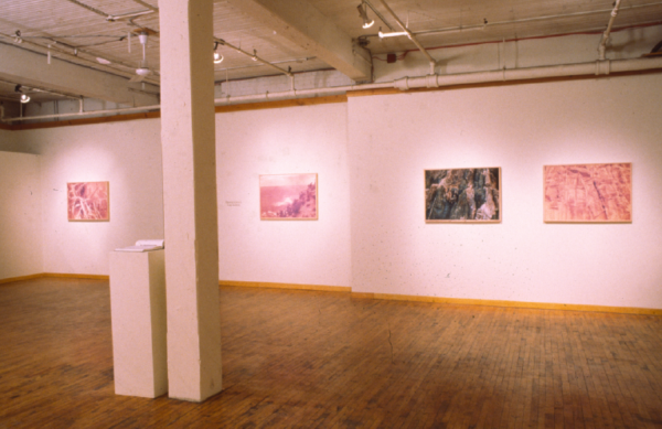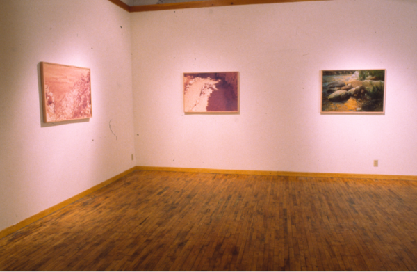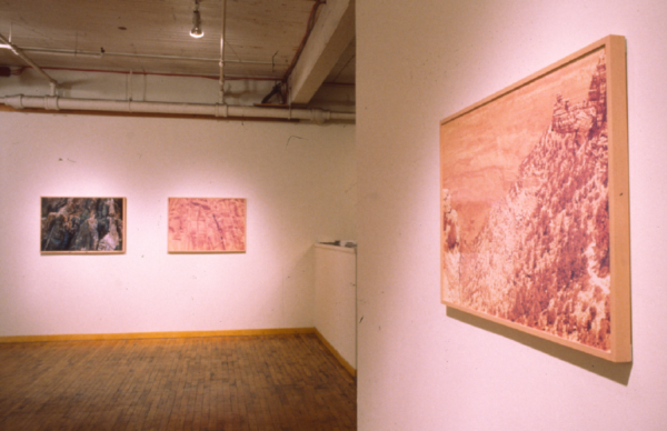 In 1988 and 1991 Gaye Jackson hiked into and out of the Grand Canyon in Arizona. This installation was produced from her photographs and writings. Travelogue utilizes manipulated colour photography and spoken text on audiotape to evoke the physical and psychological act of descending into unfamiliar and ‘extreme’ territory.