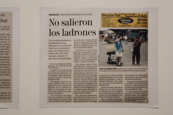 In 2006 the collective curated the XI regional ‘art salon’ (a federally sponsored juried biennial) in which they sought to expand the terrain of the visual arts to include a broader arena of cultural and social practices, many of them from the most isolated areas of the Pacific region, for example: a live match between members of the Puerto Tejada school of fencing with machetes (a practice that originates from the appropriation of the Spanish colonizers’ sport by local slaves); documentation of pirate radio stations in El Choco, one of the country’s most violent territories; and a series of works by non-professional artists. Product of an extensive investigation, this exhibition attempted to contextualize cultural objects within those historical and social formations that have been systematically excluded from academic discourse.