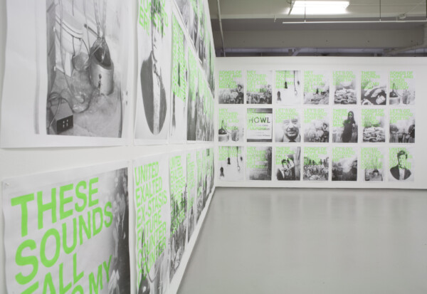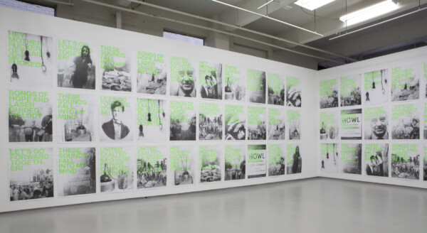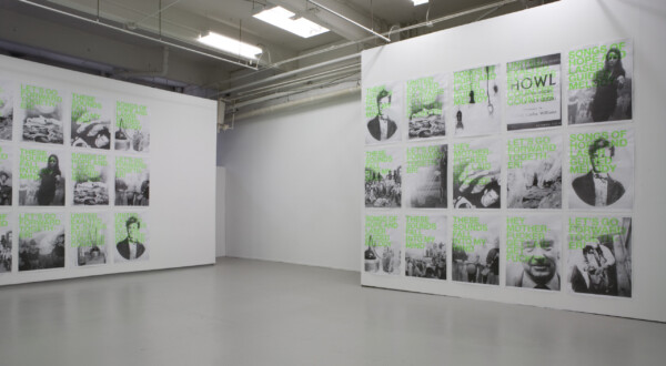 Dan Graham’s narrative of collective ecstatic rituals in his iconic Rock My Religion is a reference that runs throughout this exhibition. In a series of silkscreen posters, degraded images of 70s psychedelia, time capsules, and crystal meth labs among other things are repeatedly juxtaposed against a set of slogans in which any expression of unified purpose is obscured by a poetic ambiguity. The precariousness of the medium along with its retro graphic aesthetic intensifies a sense of nostalgia for those failed social experiments that seemed to hold the last vestiges of any sort of real counterculture.