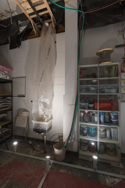 At the Or, Schwebel has followed evidence of structural deterioration at 555 Hamilton through to a line of stakeholders in the financial precarity of the gallery. Solvent also takes up the maintenance of nostalgia and authenticity that simultaneously underlines and complicates the existence of this site as a viable public, cultural space.