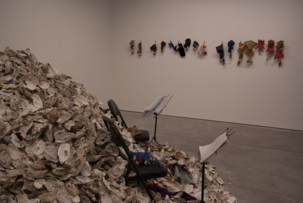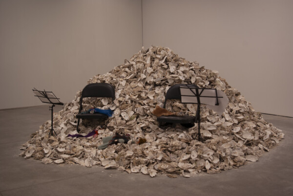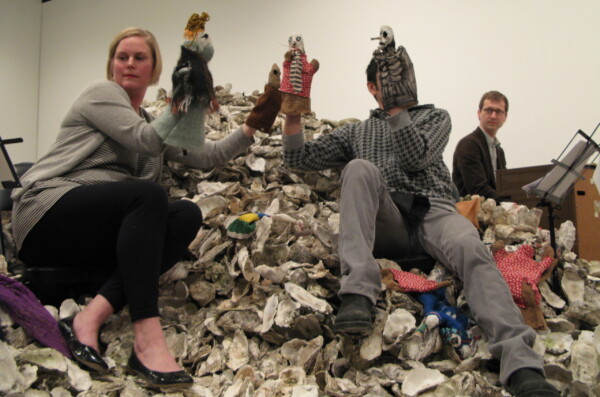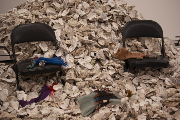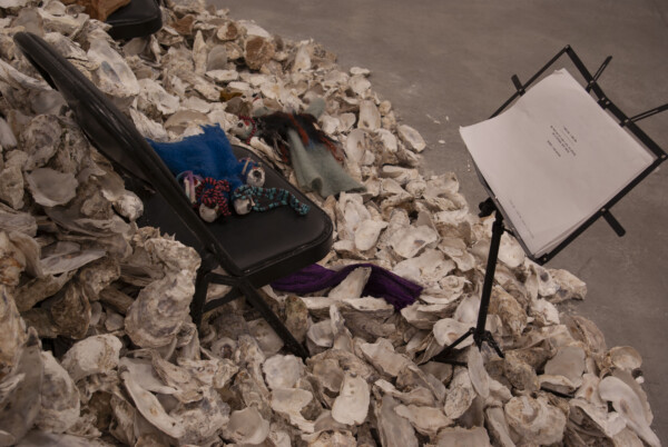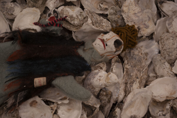 These zones are discovered not in untouched wilderness but in the seat of a used Subaru while listening to Berkeley’s freeform community radio station, as in Lutz Bacher’s video “Organic.” Oscar Tuazon, born on the Olympic Peninsula and currently living in Paris, contributes an editioned hand-bound book of his stories and photographs, which feature moments of entropic dissolution in semiwild landscapes. He also presents a hand-bound collection of issues of “Dwelling Portably,” a zine published for the past thirty years somewhere near Philomath, Ore., by a couple living invisibly and off the grid in the Oregon woods. Jordan Wolfson’s 16mm film loop “Perfect Lover” shows a realistic, animated, talking crow in woodland scenes, calling out the hours of the day in a monotone, uncanny and mundane. Heather and Ivan Morison’s large sculpture of shells in the form of a midden becomes the stage for a scabrous puppet show, “I hate her. I hate her.” Toward the end of the show’s run, Lawrence, Kansas, duo Drakkar Sauna will perform at locations in and around Vancouver and in the gallery. Their songs, including “Spear for When the Bear Comes” and “There’s Not Enough Tits on a Wolf,” will illuminate the exhibition’s themes.