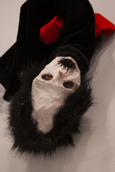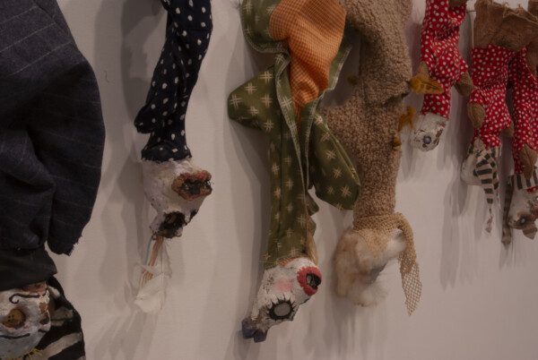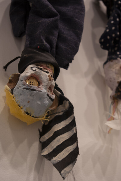 This imagined hermit has contemporary analogues among the works on view, arriving in the form of Bacher’s Polaroids of plastic troll dolls, a talking crow in Jordan Wolfson’s “Perfect Lover,” or rough puppets inhabiting the Morisons’ sculpture of a midden.