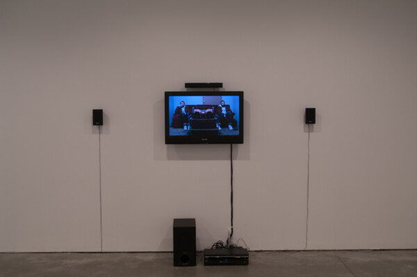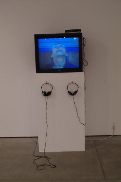 Works by Brady Cranfield, Robert Filliou, and Holly Ward play on spacialized and historicized aspects of the genre, touching on future or alternative versions of the nation-state, revolution, and war. In Cranfield’s video Daydream Nation, two images of the artist are seen listening and contemplating the Sonic Youth double-album by the same name on a Sony Heavy Duty CD Radio, “(b)uilt with the workshop or jobsite in mind”. Filliou similarly uses a double image of himself – connoting some temporal rift by way of media – a video image of the artist barking instructions to his other-self. Filliou later muses, “The spirit of a nation is incomprehensible, but a spirit of a nation and a spirit of a nation is war, or what you will…” Ward touches on both the utopianism of Buckminster Fuller’s geodesic dome patterns as well as HG Well’s somewhat foreboding 1933 chronicle, The Shape of Things to Come, a history of the world written from the perspective of 2106.