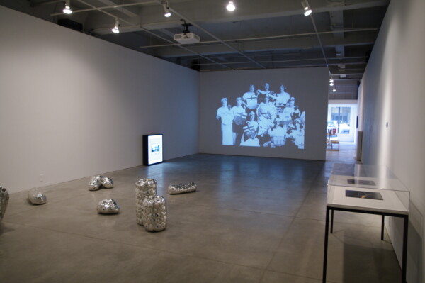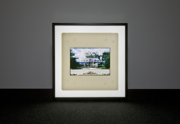 This exhibition is a vignette of sorts with three interrelated parts. It begins with a video by Jacqueline Hoang Nguyen entitled 1967: A People Kind of Place (2012) which centers on a specific point in the history of St. Paul, Alberta, a town located 300 kilometers north of Edmonton. Making use of archival film footage, in this collaged video a complex narrative regarding municipal and national policies and the contradictions inherent with the development of Canada’s multicultural act emerges. In 1967, in a gesture of radical hospitality, St. Paul inaugurated a UFO landing pad as a way to welcome the whole world including those from outer space. “The UFO landing pad”, writes Nguyen, “functions as a symbol for Canada’s increased emphasis on hospitality, tolerance, diversity, and unity at that point in history … a complex and paradoxical structural representation of both nationalist and anti-nationalist discourse”. 1967: A People Kind of Place also uncovers the colonial aspirations that led to the formation of St. Paul—the community was created for the purpose of assimilating Metis people into so-called “mainstream society”. After admitting the failure of this venture, the town dropped “des Metis” from its name. An enlarged backlit image of a 35mm slide of the original landing pad, empty and unoccupied, rests near the projected video. As the title of this exhibition suggests, science fiction and conceptions of space are oftentimes bound together with colonial aspirations.