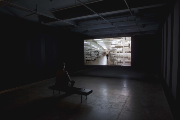 In an overdubbed narration, Woodhouse describes his work managing the images of the museum collection, as well as his own temporal lobe epilepsy, a rare medical condition that causes a profound feeling of déjà vu prior to the onset of an epileptic seizure. Overtime, these two elements seem increasingly linked, and the hallways and rooms of the museum storage building take on a metaphoric importance, as though Woodhouse is meandering through the recesses of his own mind, as much as the physical halls and rooms of the institution. Adding to a sense of doubling is the fact that Woodhouse also works as a professional actor, and is in effect ‘playing’ himself in Knox’s video, while also seeming to ruminate on this duality of actor vs acted persona.